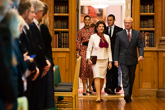 Foto: Kungaparet och Kronprinsessparet anländer till Bernadottebiblioteket på Kungliga slottet. (Sara Friberg/Kungl. Hovstaterna) Källa: Kungahuset.se