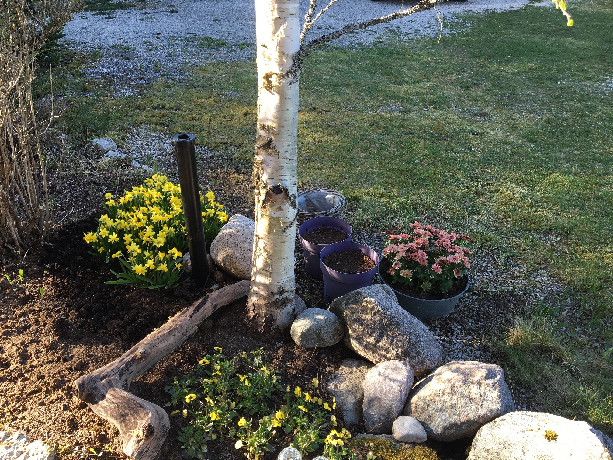 🍀🌱🐾🌼🌸 Som jag skrev i min näst senaste blogg (Helena-Reet: Om april och de första vårsysslorna i trädgården + STORT GALLERI!), är det nu dags att arbeta i trädgården. Trädgården ser väldigt tröstlös ut (delvis för att det inte finns några löv i träden och buskarna ännu), men främst för att allt har förfallit genom åren. Staketet är gammalt och bör bytas ut, träden och granhäcken kräver beskärning (det sistnämnda kommer jag kanske att ta bort), blomsterbäddarna kräver omsorg, växthuset kräver byte av växter, uthusen reparation, borden på terrassen att bytas ut osv. osv. …, Listan över arbeten är så lång att jag inte ens vet vad jag ska börja med. För tillfället har vi arbetat med enklare och billigare problem – tyget på studsmattan har bytts ut (täcket har varit trasigt under ett par år), en skyddande ram (täcke) som täcker metallkanterna måste också köpas in så att barnen kan hoppa säkert. Jag har haft tid att kratta en gång i nästan hela trädgården. Många farliga torra träd, mycket havtornssnår, andra torkade grenar och buskar har fällts ner eller beskurits. Många rabatter har återställts och många blomsterbänkar har börjats med. Vi gjorde också två planteringslådor som väntar på jord. Där vill jag plantera dill, lök, gräslök, persilja, timjan, sallad och pepparmynta. Även en gammal stor kompostlåda av trä väntar på att bytas ut. Ah sååå .. jag planterade en ramslök från min mammas trädgård. Jag hoppas verkligen att den kommer att börja växa i snabb takt och föröka sig rikligt, för det finns inget bättre än en hemlagad ramslökpesto!