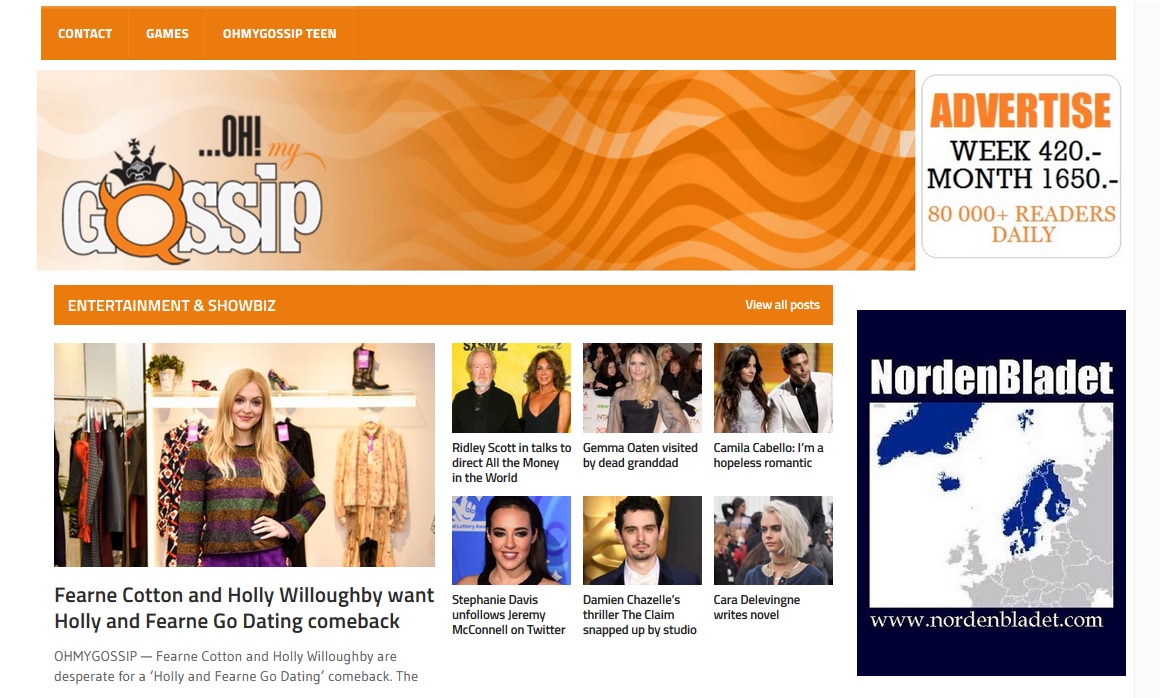 1. Sin del av den dagliga trafiken. Ohmygossip sidor har 80 000 – 140 000 läsare dagligen (till och med 4,2 miljoner läsare i månaden). Alla utskick syns på samtliga första sidor. Exempel: Du skriver blogg på estniska och dina utskick syns på Ohmygossip.ee och även på Ohmygossip.fi, Ohmygossip.se och Ohmygossip.com.