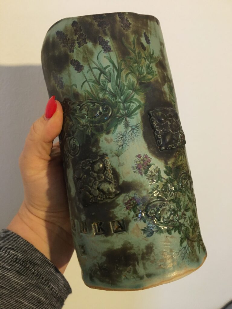 Jag gillar verkligen att servera mat i handgjord, originell och unik service! Ivankan Shoshana och jag har gjort flera köksfat i lera. I dag gick Ivankan och jag till lercirkeln igen och vi har många fler vackra produkter på gång. Min favorit just nu är den nyligen tillverkade brokiga blomstervasen och den matchande skålen. Jag vet inte hur väl fotot fångar deras essens, men de är så varma och enkla kärl i lantlig stil.
