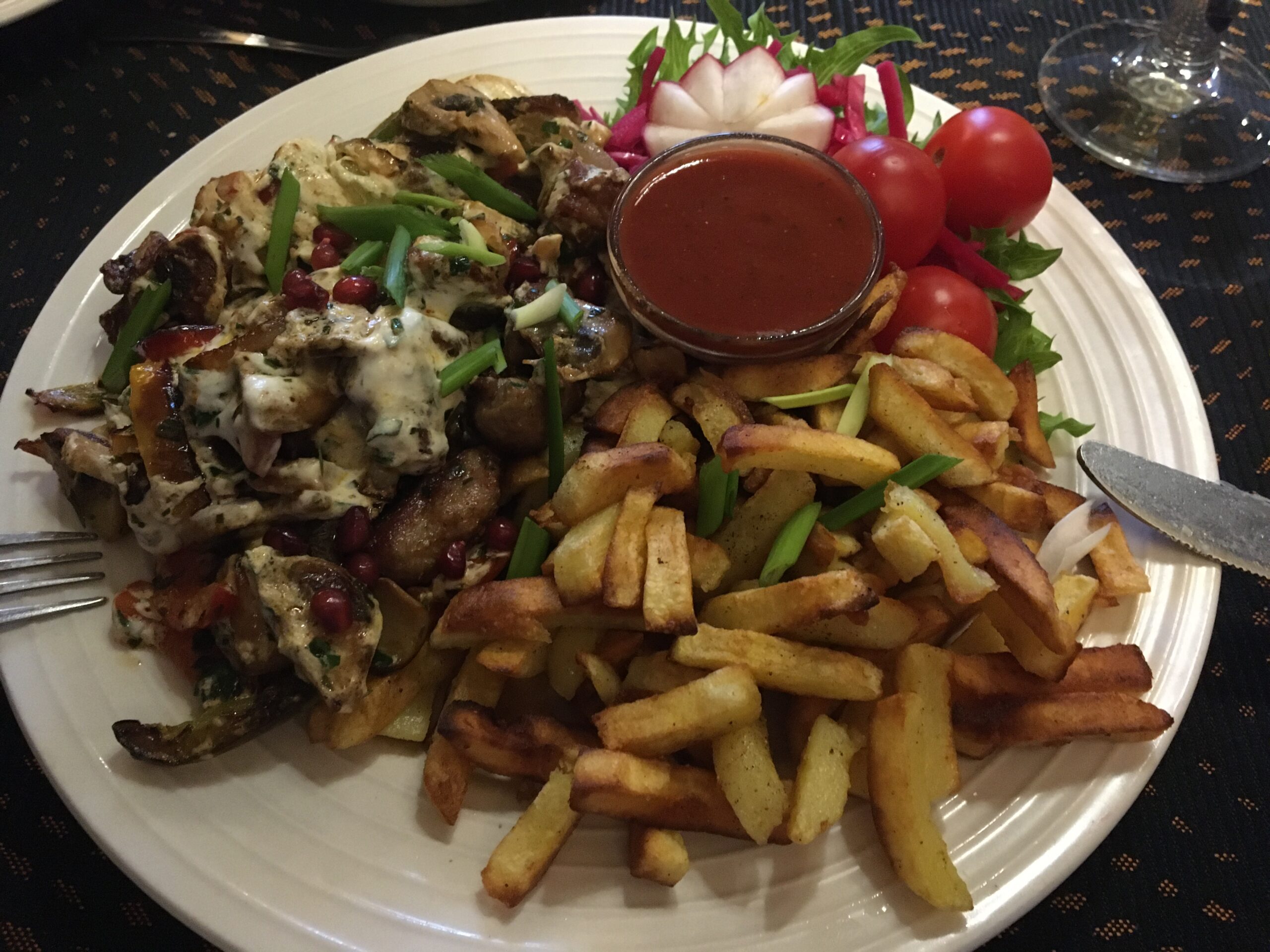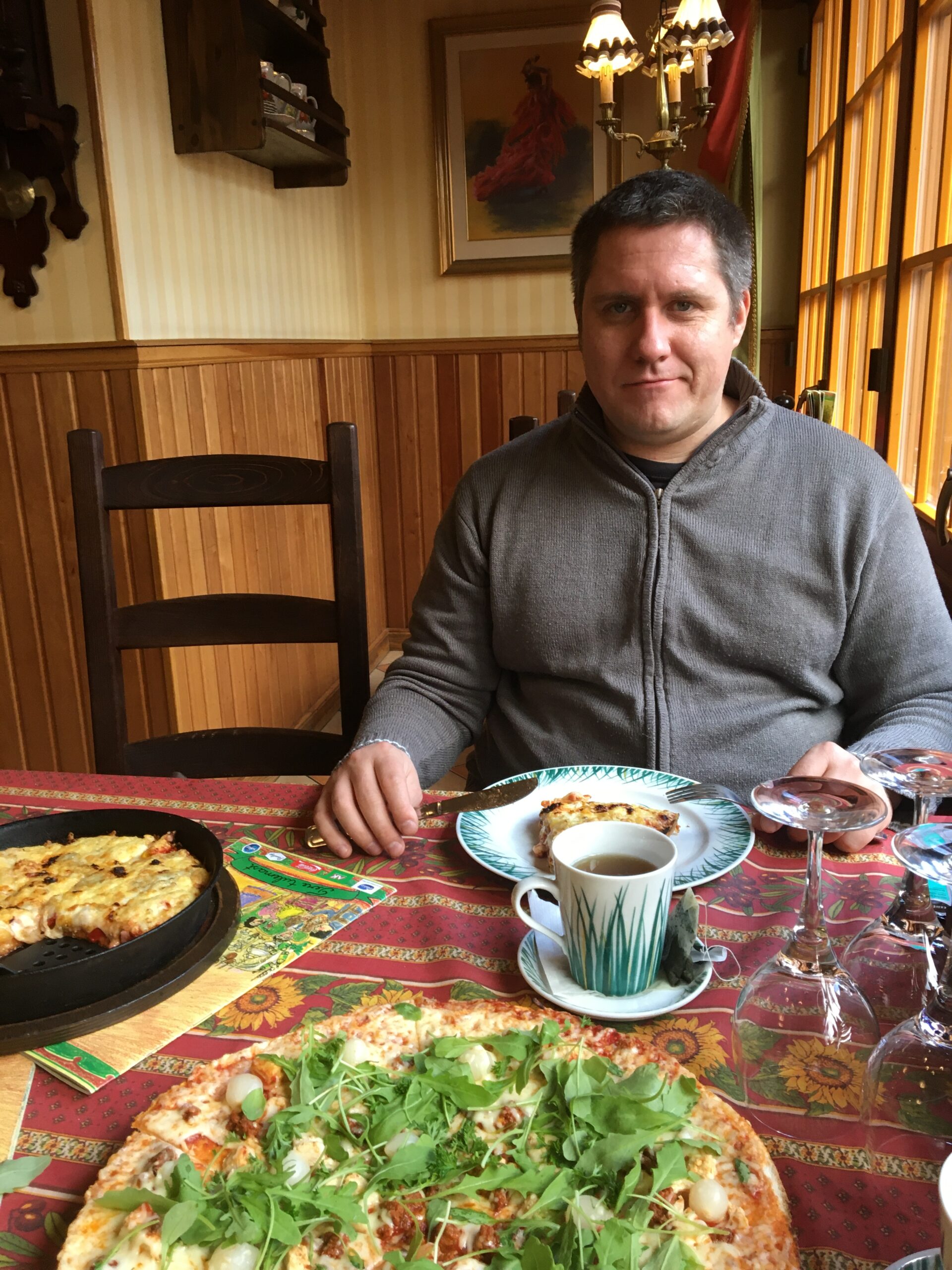 Ok, men med all denna information gick vi ivrigt till en georgisk restaurang i Pärnu. Jag säger ärligt att jag inte ens kan förklara den känslan ordentligt. Mannen som serverade vid borden var mycket trevlig och vänlig – under vår vistelse på restaurangen pratade han med kunderna på flytande estniska, ryska, finska och engelska. Han log och var välvillig … Maten smakade fantastiskt, portionerna var enorma, chef Manana Keburias Chatjapuri var lite salt men smakade ändå mycket bra … men själva stället var lite för dystert och priserna var way too dyra, I think. Vi beställde två huvudrätter med kött (med en hög pommes frites och kött endast en formell del av portionen), Chatjapuri (en georgisk ostpaj), en kopp svart te och två flaskor georgisk öl. Lunchräkning 50 euro. Vi tog halva Chatjapuri med oss. Jag vet verkligen inte om vi är för fattiga eller om priset trots allt var för högt … i alla fall, hade vi en känsla av att vi gillade besöket och samtidigt inte. Allt var nästan ok, men samtidigt hade jag förväntat mig något mer för de pengarna.