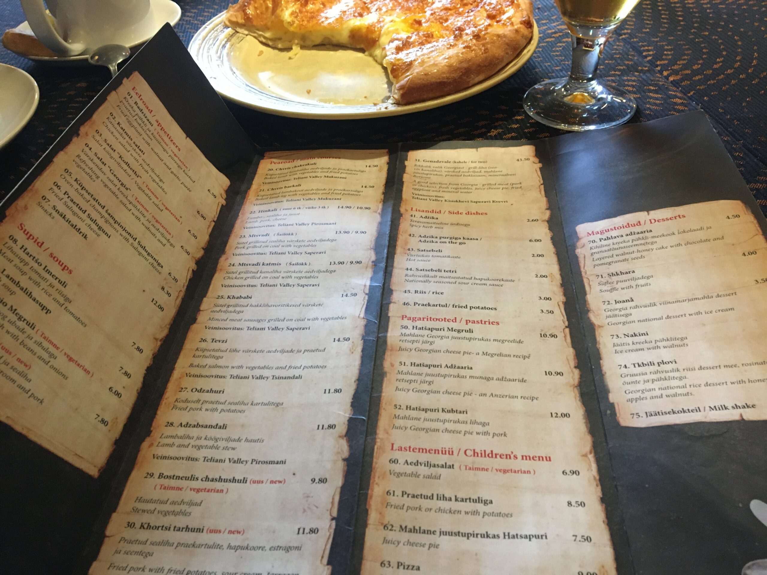 På lördagen åt vi lunch på den georgiska restaurangen Kolhethi (Kuninga 36, ​​Pärnu 80014) i centrala Pärnu. Allan har berättat så mycket fint om sina resor i Georgien, vi tittar även på TV3:s serie “Kethi med mor i Georgien” och vi gillade även Kanal 2:s program “Nördar och skönheter i Georgien”. Det har blivit en fullkomlig besatthet för mig att besöka Georgien och kanske tillbringa en hel månad i Tbilisi med hela familjen. Varför? Tja, det finns många anledningar till det. Framför allt förstås Allans ”marknadsföringsarbete”, variation, varmare luft än i Estland, låga priser, vänliga men ändå inte påträngande georgier, mer prisvärd och mycket välsmakande georgisk mat, bra prissatta hyfsade hotell osv. Det verkar också som det är ett säkert land. Dessutom tänkte jag att jag skulle göra alla dyrare skönhetsbehandlingar på en gång – till exempel kostar helkroppsepilering cirka 30-50 euro där, i Estland 500-600 eller mer. Not bad?!